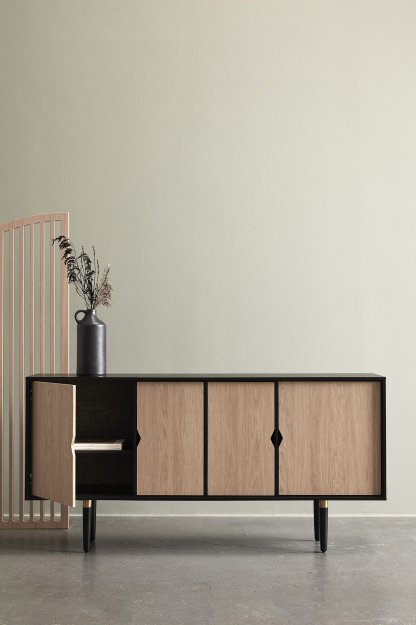 Unique's Sideboard er en smuk opbevaringsløsning som er designet af danske byKATO. Unique's sideboard er designet i sort lakeret egefinér med elegante ege fronter. Skænken har 4 hylder, som gør det muligt at kunne opbevare præcis det du ønsker. Unique Sideboard er en Limited Edition der kun tilbydes i en begrænset periode.