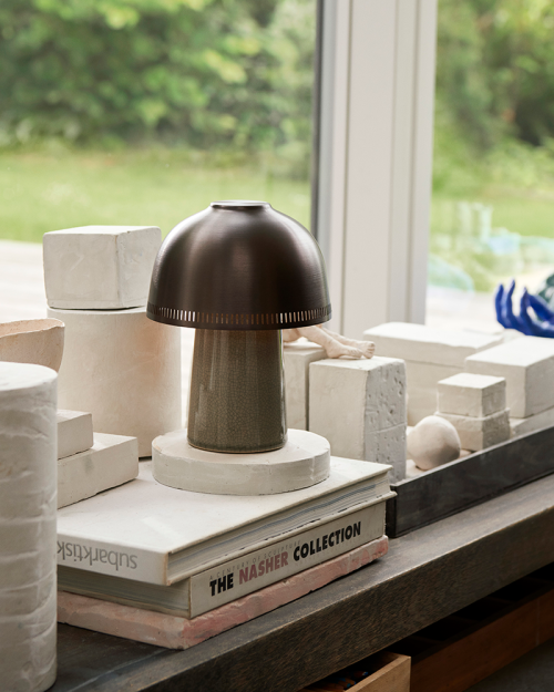 Raku er opkaldt efter den traditionelle japanske keramikteknik og er en kompakt lampe. Raku Lampen har en håndformet keramisk base med en krakelerende glasur, der varierer lidt i hver eksemplar. Ved design af Raku blev Sebastian Herkner styret af udvælgelsen af materialer. Som fortaler for håndværk og dets værdi valgte Herkner to metalvarianter til lampens afrundede skærm for at komplementere den mere poetiske keramiske base. Langs skærmens kant tillader subtile perforerede detaljer lys at sprede sig til omgivelserne. En dæmpbar funktion kan ændrer intensiteten af lyset afhængig af stemningen.