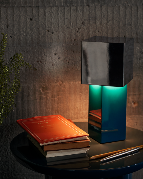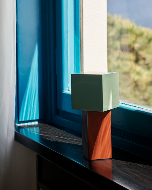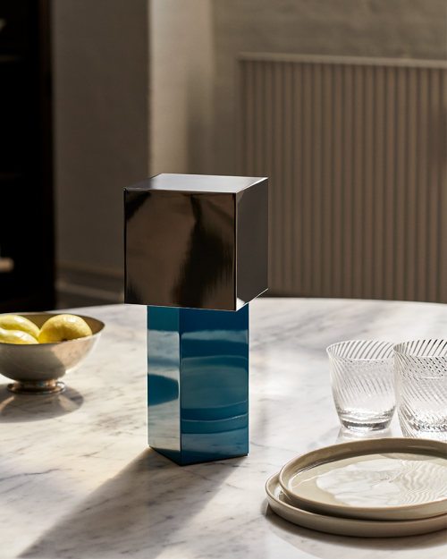 Pivot fra &Tradition er en skulpturel portable lampe. Lampens geometriske skærm er placeret i en 45-graders vinkel i forhold til bunden, hvilket skaber en blød diffusion, der efterligner den varme glød fra et stearinlys. Resultatet er en smukt lys, der giver en indbydende stemning, der forvandles ved et tryk på en knap.