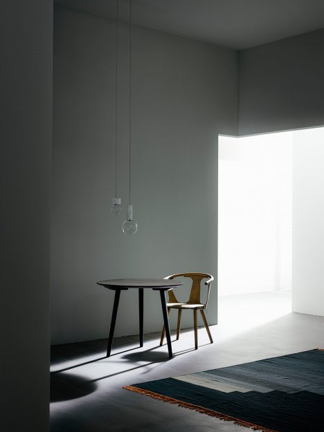 Samspillet mellem det positive og negative rum er central for In Between stolen, designet af Sami Kallio for &tradition. In Between er produceret ved hjælp af to klassiske teknikker: kompressionsstøbning (hvilket gør stolen let og tyndt men alligevel stærk) og woodturning (en teknik, der bruger en drejebænk, for at opnå flere detaljer). In Between fås med og uden polstring med stel i enten hvidolieret eg, røget eg eller sortbejdset ask.