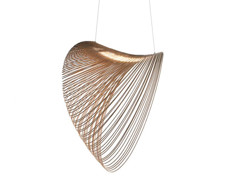 Illan lampen er pakket fladt og folder sig ud i tynde linjer af finer når den monteres. Fås i flere størrelser.