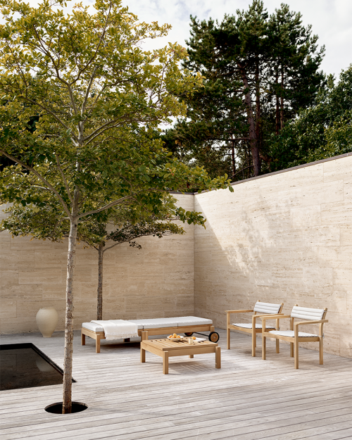 AH601 udendørs loungestol med armlæn i teak fra Carl Hansen & Søn.