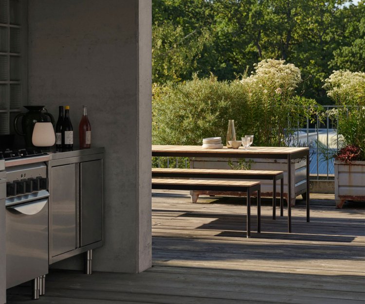 Outdoor havemøbelserien Ville fra &Tradition er skabt som en hyldest til og fejring af natur og materialitet, Anderssen & Volls udendørskollektion Ville omfavner alfresco living med en kombination af soliditet og blødhed. I Ville havemøbelserien er der to spiseborde AV25 og AV26. Begge med en bordplade, fremstillet af teak, hvilket giver en smuk varm og indbydende overflade, som valgfrit kan olieres eller efterlades ubehandlet. Stellet er fremstillet af pulverlakeret stål.