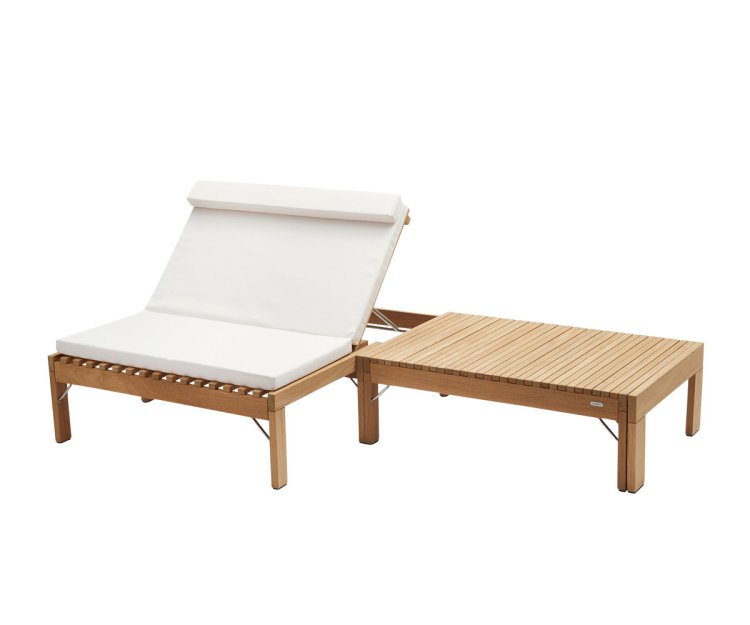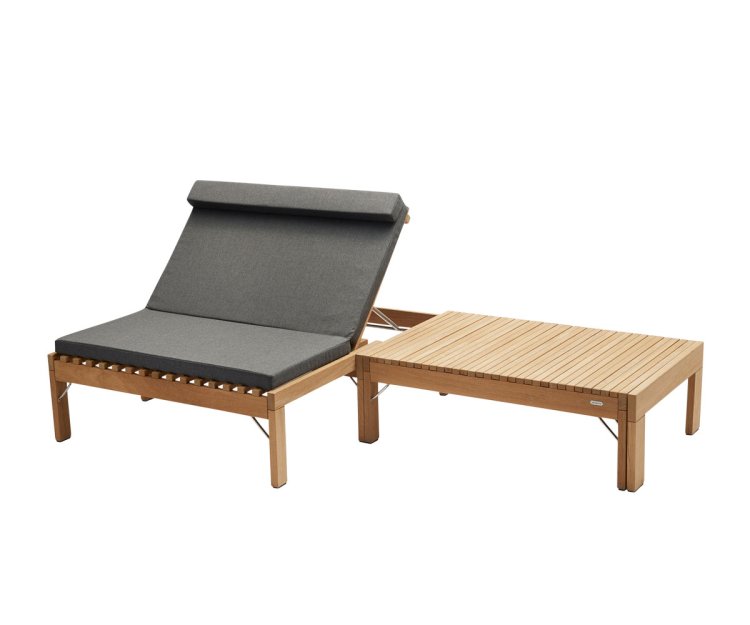 Den alsidige Riviera serie blev designet i 1991 i samarbejde med den danske designer Povl B. Eskildsen. Med tiden er Riviera blevet en klassiker blandt havemøbler. Den er kendt for sin fleksibilitet og sit smukke udseende. Ambitionen for designet er, at bruge den mindst mulige mængde teaktræ uden at gå på kompromis med styrken. Møblerne i Riviera serien er konstrueret til at kunne justeres i både udtryk og funktion og kan alle nemt suppleres med en komfortabel hynde. Den alsidige og multifunktionelle Riviera lounge kan transformeres, så den kan bruges til en lang række forskellige formål. Riviera lounge er designet til at blive udvidet i bredden og kan både bruges som loungestol og -bord, som sofa og som solseng, når den er helt plan. Fremstillet i FSC-certificeret teak og med beslag og skruer i rustfrit stål, som sikrer langvarig funktionalitet.