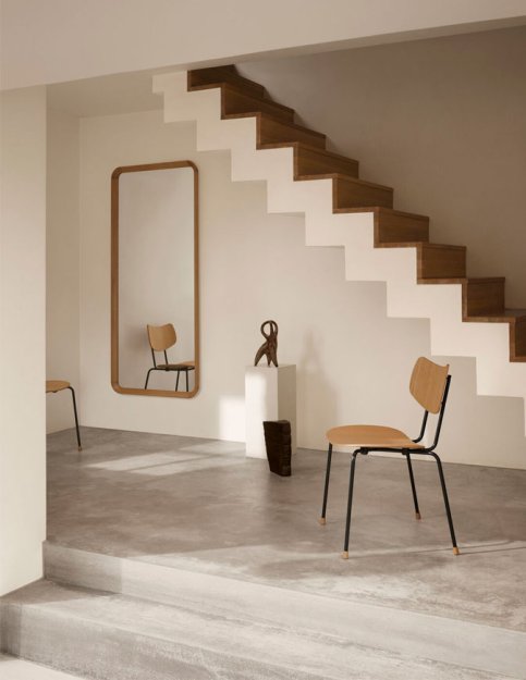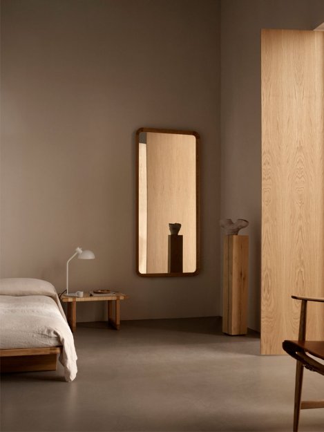 VLA62 Radiohusspejlet er skabet af FSC-certificeret massiv eg, hvilket giver spejlet et meget elegant og moderne udtryk. Spejlet er sammensat af otte stykker træ, der matches omhyggeligt for at sikre, at træets årer tegner et kontinuerligt forløb.