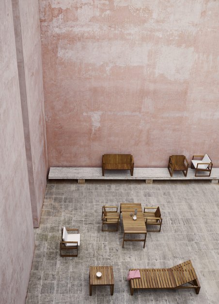 Den danske arkitekt og professor Bodil Kjær har gennem hele sin mangfoldige karriere arbejdet på at skabe harmoni mellem design og arkitektur – et arbejde, der i 1959 resulterede i en elegant møbelserie med så høje funktionelle og æstetiske kvaliteter, at møblerne også kunne anvendes indendørs. Næsten seks årtier efter introduktionen af Indoor-Outdoor føjer Carl Hansen & Søn denne arkitektoniske møbelserie til sin kollektion af designklassikere.