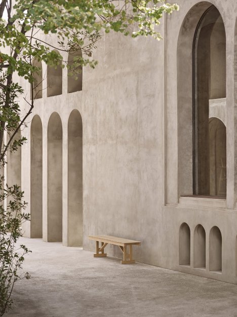 Carl Hansen & Søn har genskabt sættet efter Børge Mogensens originale tegninger, men har valgt at forhøje bord og bænke for at imødekomme gennemsnitshøjden i dag. Derudover beklæder Carl Hansen & Søn bænken med en kanalsyet hynde, hvis baner følger trælamellernes retning. Hynden fremstilles i vejrbestandigt, rengøringsvenligt Sunbrella-tekstil med lang levetid, som er fremstillet af op til 50% genbrugte Sunbrella-fibre. Hyndens fyld tillader regnvand at passere igennem og sikrer dermed kortere tørretid.