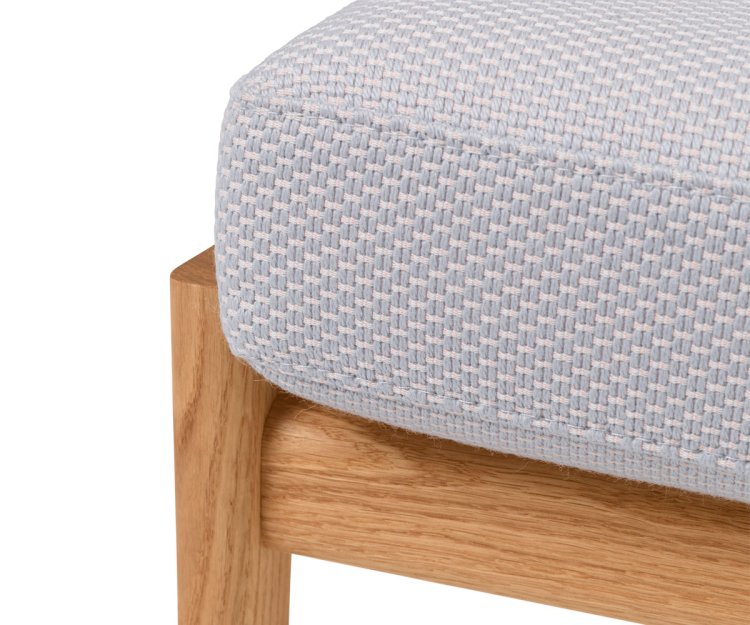 Den FSC™-certificerede ramme i massiv eg fremviser de samme strenge tømrerdetaljer og dynamiske linjer som stolene i CH290-serien. Den polstrede hynde med aftageligt stofbetræk tilfører et blødt, indbydende udtryk, der balancerer træets styrke med komfortens lethed.