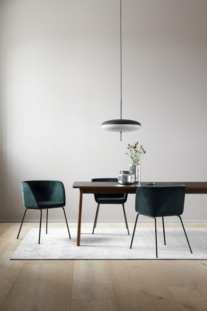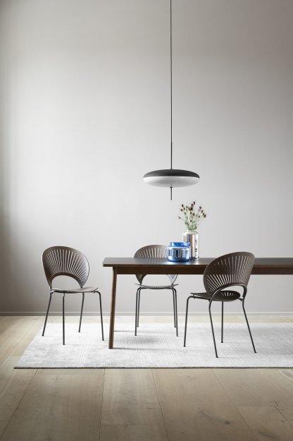 Ana-bordet er et spisebord med stel i massivt træ og en indbygget udtræksfunktion med integrerede tillægsplader. Med den letanvendelige ”butterfly”- mekanisme kan Ana-bordet let udvides til flere siddepladser. Bordpladen er udført med silkeblød Fenix(R)-nanolaminat og kantprofiler i massiv eg