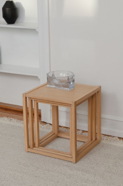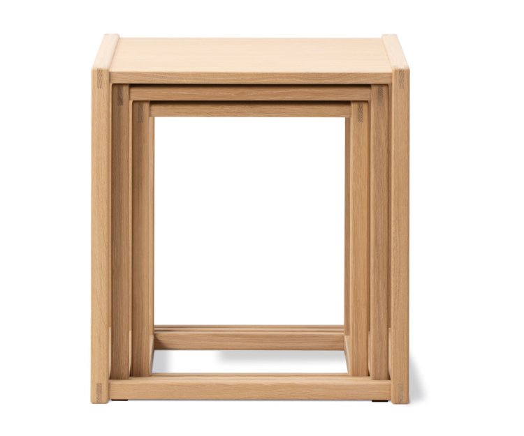 BM375 Nesting Tables er en relancering af Børge Mogensens smukke BM375 Nesting Tables fra 1962. BM375 Nesting Tables er produceret af Fredericia Furniture og afspejler Børge Mogensen vision om at skabe minimalistiske og funktionelle designermøbler til hjemmet.