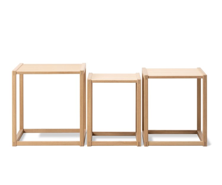 Det minimalistiske designermøbel af Børge Mogensen er fremstillet i lys olieret eg, som beskytter træet mod snavs og pletter, samtidig med at du kan nyde egetræets organiske åretegning. Disse FSC®-certificerede egetræsborde tilfører et stilrent udtryk til dit hjem og er samtidig fleksible. Du kan med fordel anvende Børge Mogensens Nesting Tables enkeltvis eller som ét samlet sofabord.