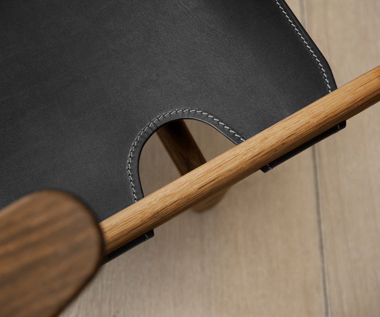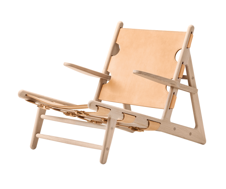 Jagtstolen byder på stor siddekomfort, med sine afrundede armlæn samt sæde og ryg, der smyger sig efter kroppen. Trods sædets forkant, som svæver kun 30 cm over jorden, er stolen takket være armlænene nem at komme op fra.