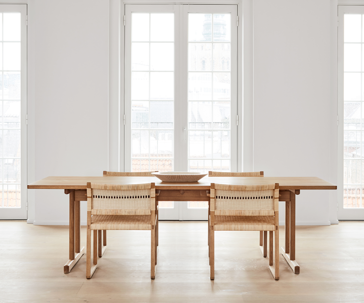Shakerbordet er tegnet af Børge Mogensen i 1964 med et mål om æstetisk renhed hvor materialet taler sit eget sprog. Bordet fremstilles i eg af første sortering, der kun bliver smukkere gennem tiden og hverdagens brug.