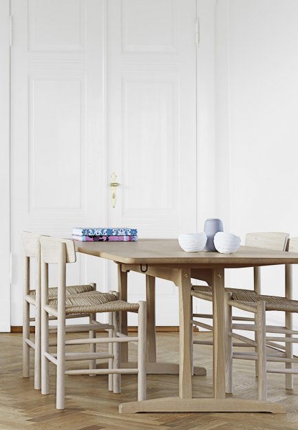Designet af Børge Mogensen i 1947 er Shakerbord C18 et klassisk spisebord, der stadig står som et stærkt eksempel på dansk møbeltradition. Bordet er skabt med udgangspunkt i Shakerbevægelsens idealer om funktionalitet, enkelhed og høj kvalitet – værdier, der stadig gør det til et eftertragtet møbel i moderne hjem.