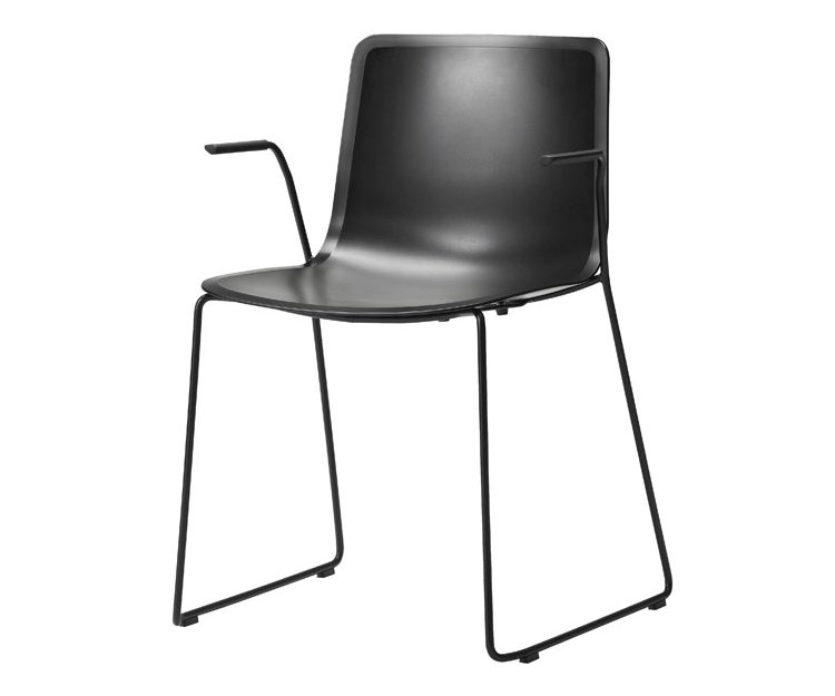 Skallen findes i Fredericia standard farver og kan udstyres med armlæn og fuldpolstring i stof eller læder. Stellet fås som standard i krom eller sort.