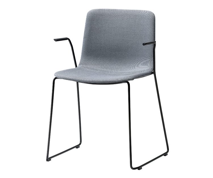 Skallen findes i Fredericia standard farver og kan udstyres med armlæn og fuldpolstring i stof eller læder. Stellet fås som standard i krom eller sort.