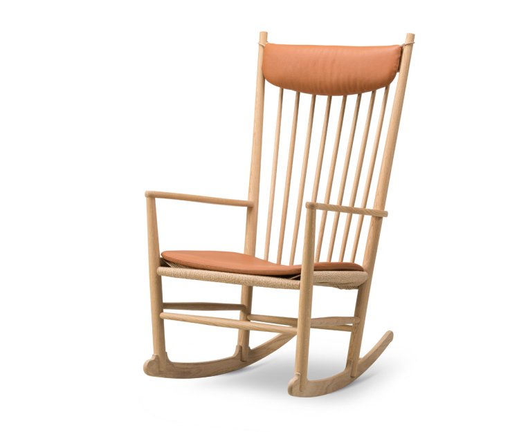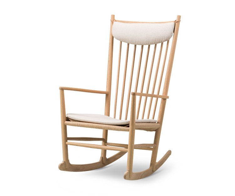 J16 gyngestolen er klassikeren blandt de mange gyngestole, som Hans J. Wegner gennem årene har tegnet. Stolen blev i 1944 lanceret af FDB Møbler, og den har været i produktion lige siden. I dag produceres den af Fredericia Furniture. Hans J. Wegner lægger vægt på bevægelsesfrihed og ergonomi i sit stoledesign - egenskaber, som gyngestolen i særlig grad rummer. Til gyngestolen har Hans J. Wegner designet en fodskammel.