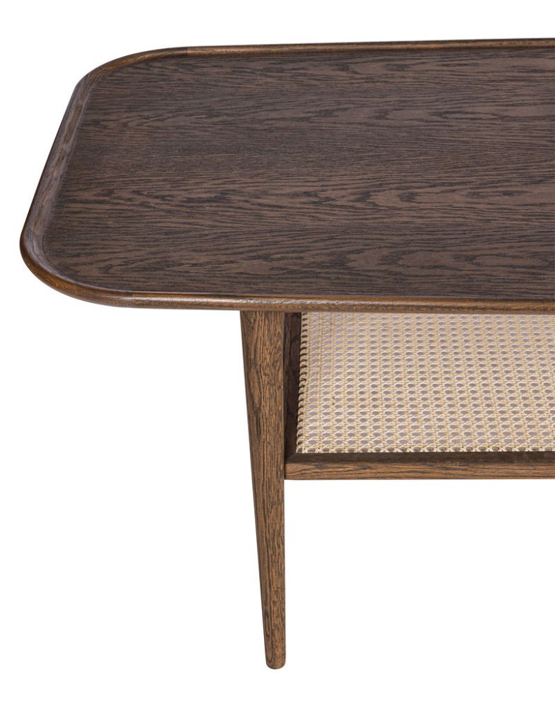 Fransk flet er i dag mere populært end nogensinde og bruges flittigt i moderne boligindretning. Det naturlige materiale skaber varme, struktur og en visuel lethed, som står smukt i kontrast til træets soliditet. Resultatet er et sofabord, der føles både luftigt, indbydende og tidssvarende.