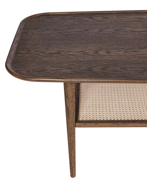 Det karakteristiske design kendetegnes af den smukt profilerede kant, som tilfører bordet et eksklusivt og gennemarbejdet udtryk. Under bordpladen finder du en praktisk hylde i lys fransk flet, der ikke blot giver ekstra opbevaringsplads, men også tilfører bordet et let og moderne look.
