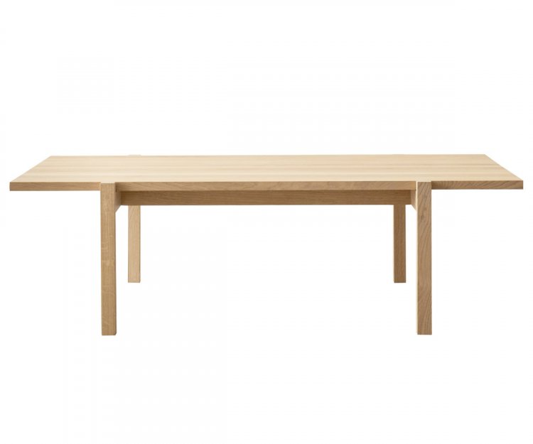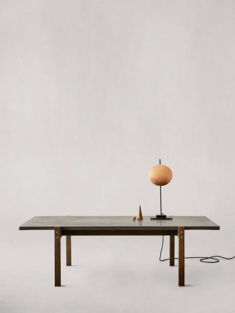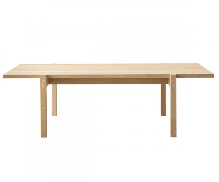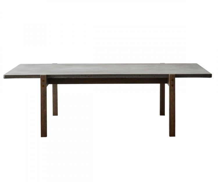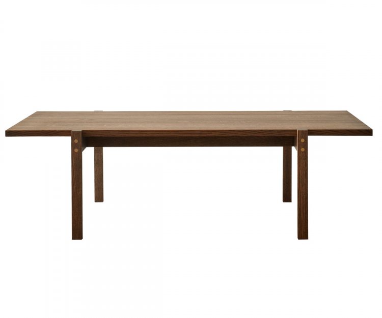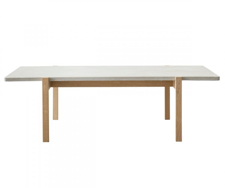 Eugene udføres med en base i massiv eg og messingdetaljer. Bordplade i enten massiv eg eller beton.