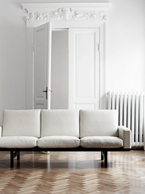 Ren klassiker af Hans J. Wegner, designet i 1955. GE 236 sofaen fås med stel i overfladebehandlet eg og sæde/ryg polstret i et væld af tekstiler og læder. Sofaen kan også bestilles med duntop hynder.