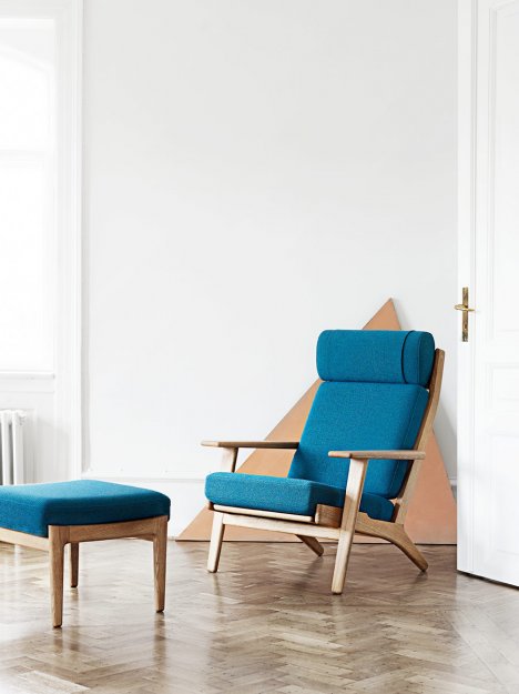 Klassiker designet af Hans J. Wegner i 1953. GE 290A lænestolen fås med stel i bøg, eg eller valnød og sæde/ryg polstret i et væld af tekstiler og læder. GE 290A fås med lav og høj ryg. Kan bestilles med duntop hynder.