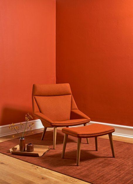 De stramme, lige linjer er næsten til at skære sig på, og dét er en del af hemmeligheden bag stolens letgenkendelige og mageløse udtryk. Men modsat hvad man måske skulle tro, fremmer det ulastelige udtryk faktisk siddekomforten. Skammel og sæde smyger sig således nænsomt om fødder og ben - og er skabt til flittig brug. At sidde i stolen er som at bevæge sig rundt på bonet sildebensparket i en velsiddende smoking: Man føler sig så elegant og veltilpas, at man automatisk ranker ryggen.
