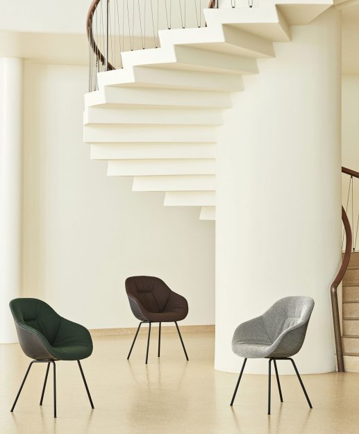 About a Chair er designet af danske Hee Welling med fokus på komfort og et utal af anvendelsesmuligheder. Stolen har en let og åben konstruktion, hvor den runde skal med dens "arme" giver et varm og velkomment udtryk samt en yderst behagelig siddekomfort. Med About serien har HAY og Hee Welling bevist, at hvis en ide er stærk nok, har den uanede muligheder. Det hele bygger på tanken om at kombinere form, funktion, komfort, detaljer samt æstetik.