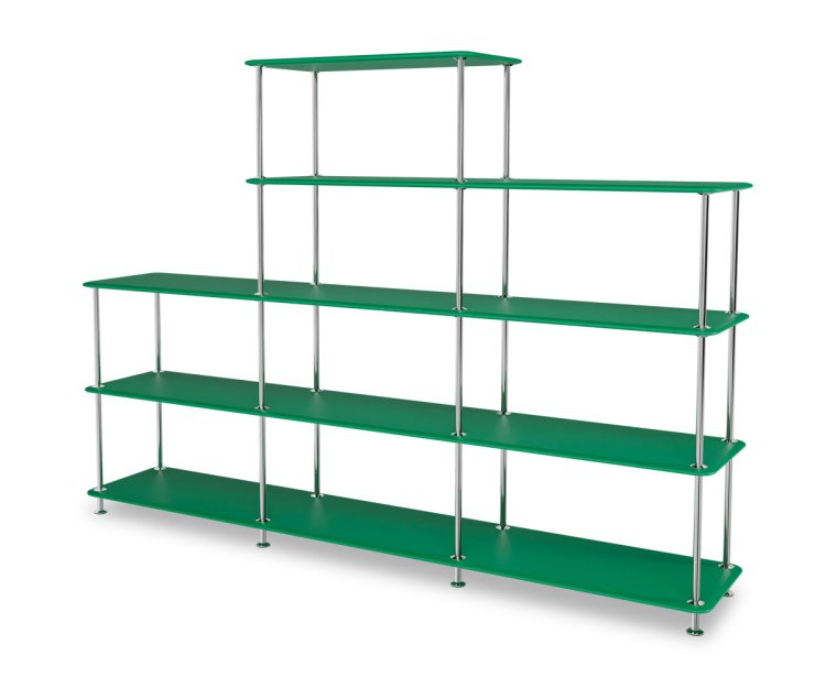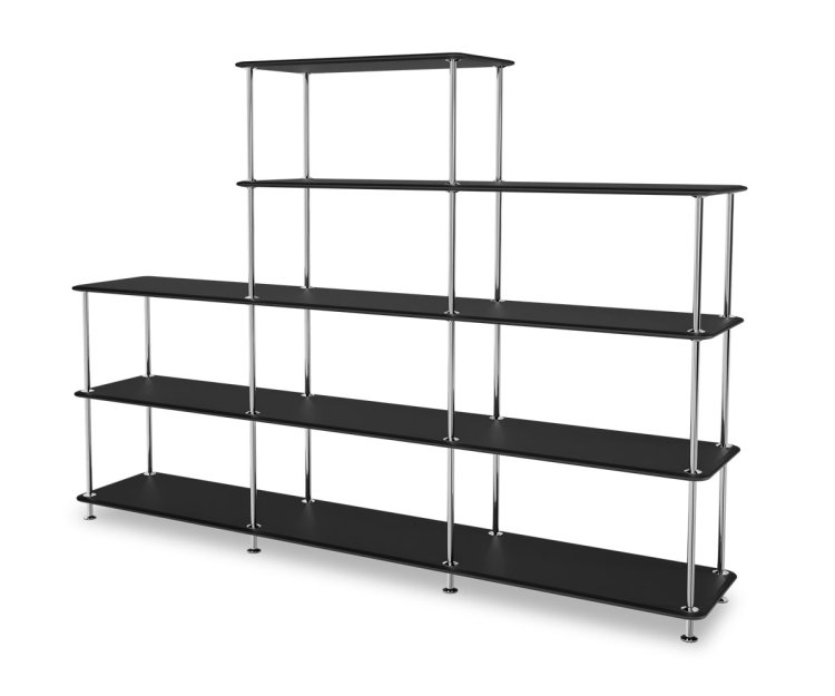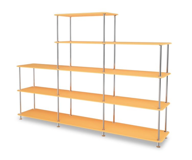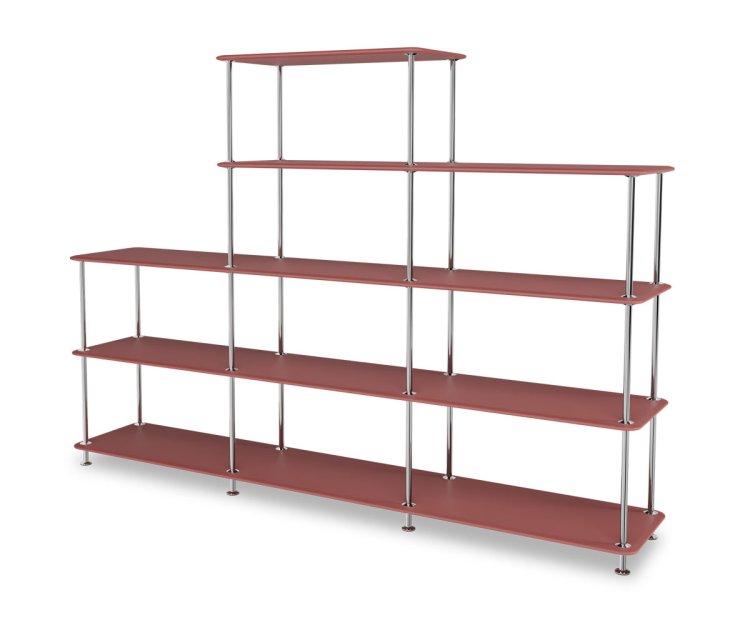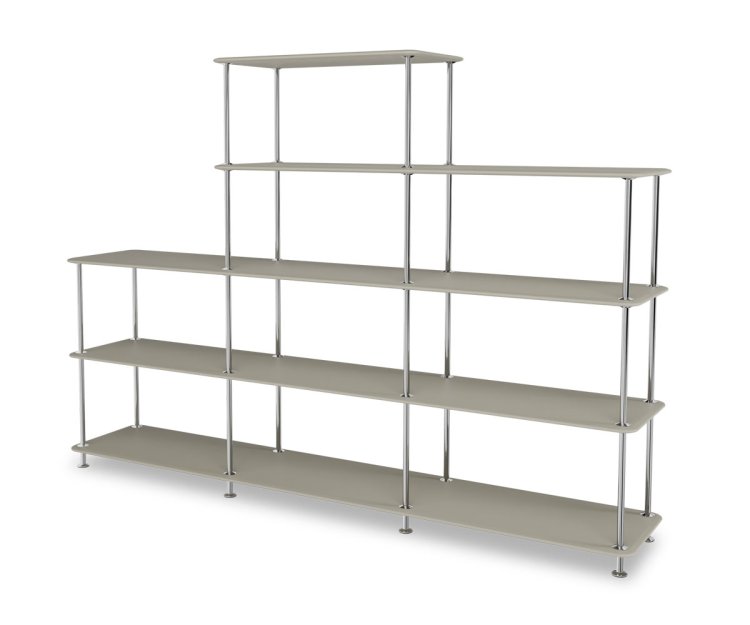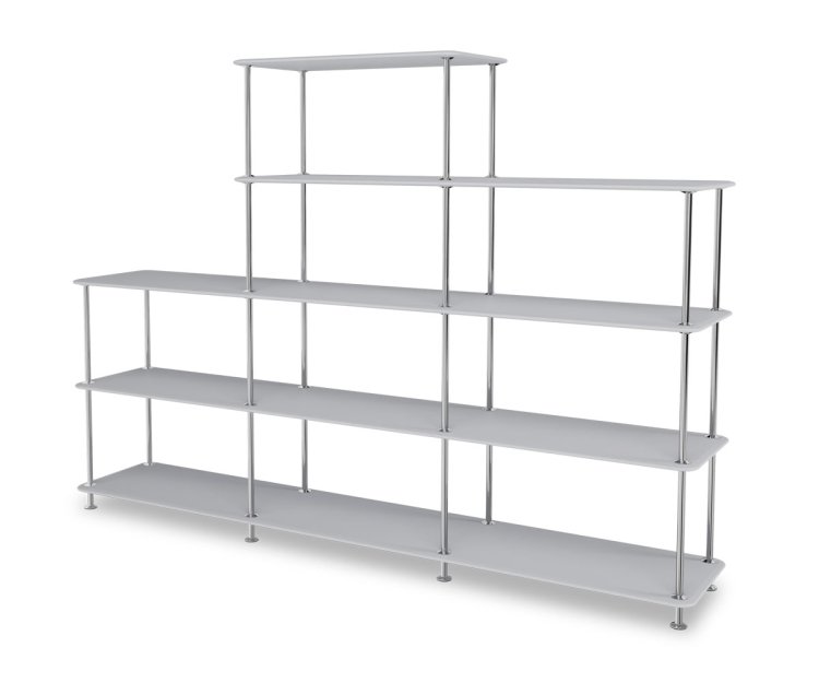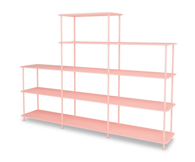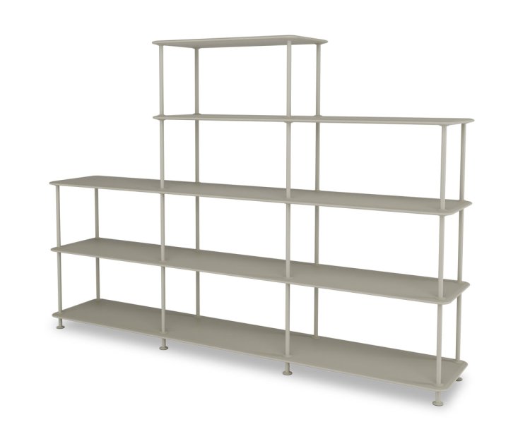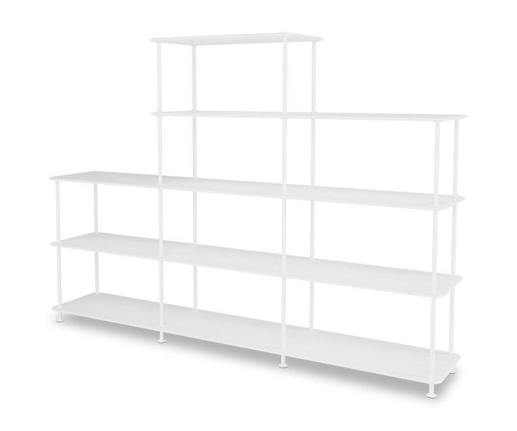 Montana Free reolsystem er opbygget af lakerede MDF-hylder i dybde 38 cm. adskilt af tynde søjler, der giver et let og svævende udtryk og understreger de horisontale hylder. OBS: Reolen leveres som standard glat lak, men kan også vælges i strukturlak.