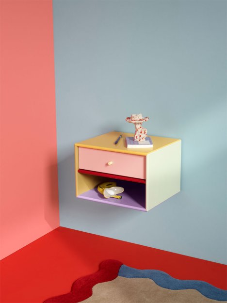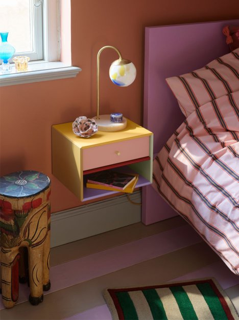 KIMPOP DASH, skabt i samarbejde mellem Montana Furniture og KIMPOP, er et væghængt natbord, der er lige så forfriskende som en is på en varm sommerdag. Med sin enkle skuffe og legende design holder DASH dine vigtigste ting inden for rækkevidde om natten eller fungerer som en charmerende hylde i din entré. Uanset hvor det placeres, spreder dets farverige udtryk glæde og personlighed i dit hjem.