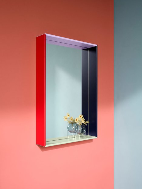KIMPOP SHELFIE, skabt i samarbejde mellem Montana Furniture og KIMPOP, er et spejl, der indrammer dit spejlbillede med fire strålende farver. Den dynamiske kombination af levende nuancer og refleksion skaber et legende og elegant udtryk, der tilfører både dybde og personlighed til ethvert rum.
