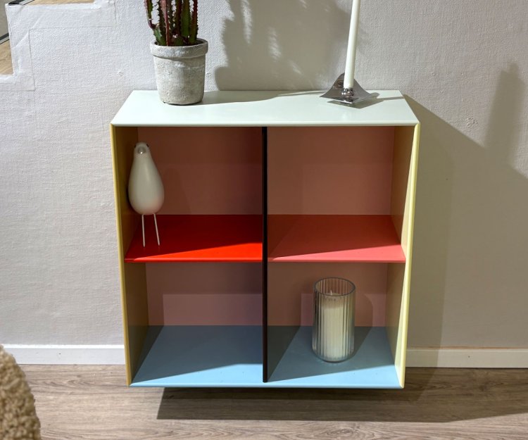KIMPOP SHOW reol er skabt i et eksklusivt samarbejde mellem Montana Furniture og KIMPOP, hvor designtraditioner bliver udfordret med en modig og legende farvepalet. Hver flade af reolen er individuelt farvesat og forener bløde pasteller med kraftfulde, mættede nuancer. Resultatet er en harmonisk kontrast, der skaber fire unikke rum til opbevaring og udstilling af dine mest elskede genstande.