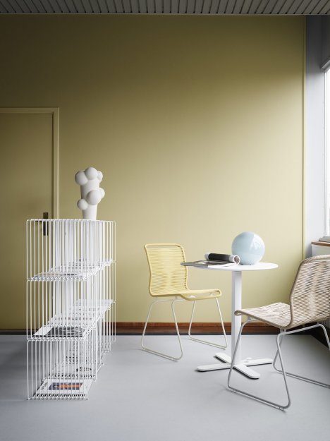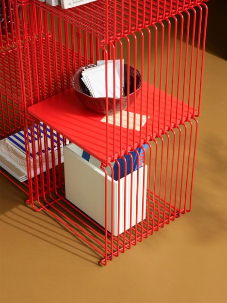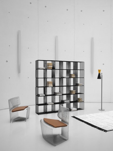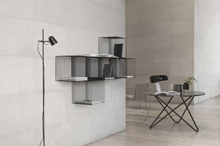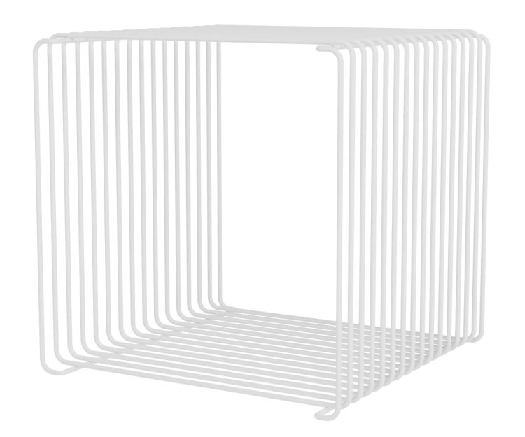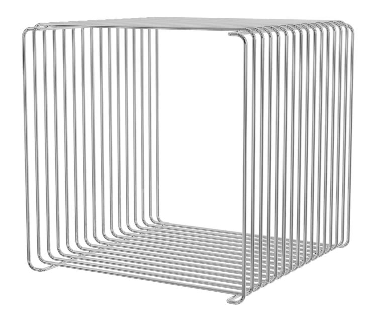 Verner Pantons trådreol er på en og samme tid rå og industriel, let og elegant. Det forkromede stål fanger lyset, men synes alligevel næsten at forsvinde i rummet. Trådreolmodulerne kan bruges enkeltvis eller flere sammen - på gulv, væg eller som rumdeler. Vælg mellem forkromet eller lakeret stål.