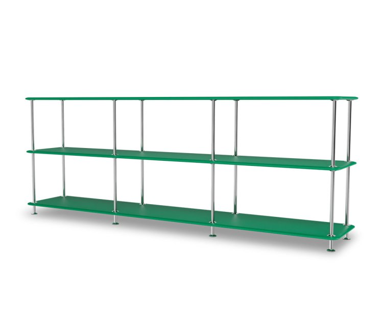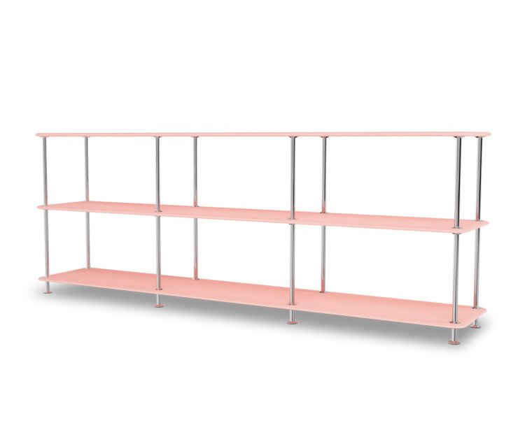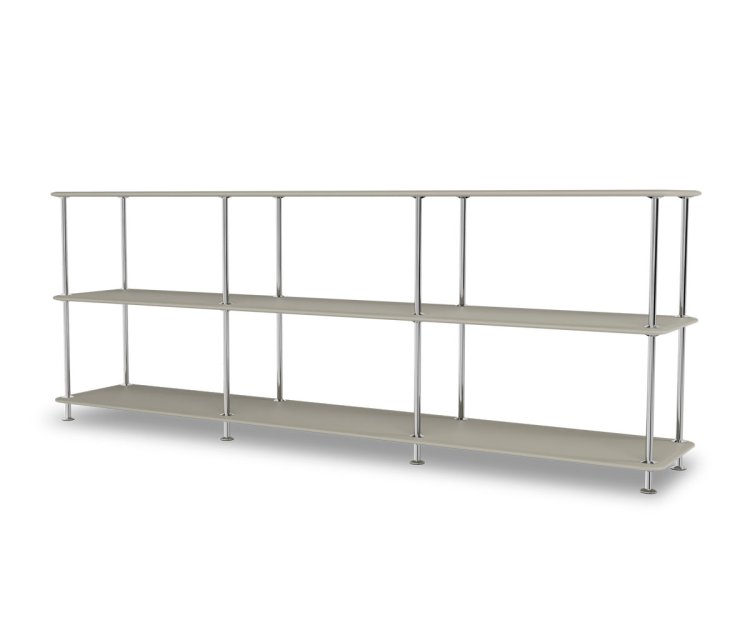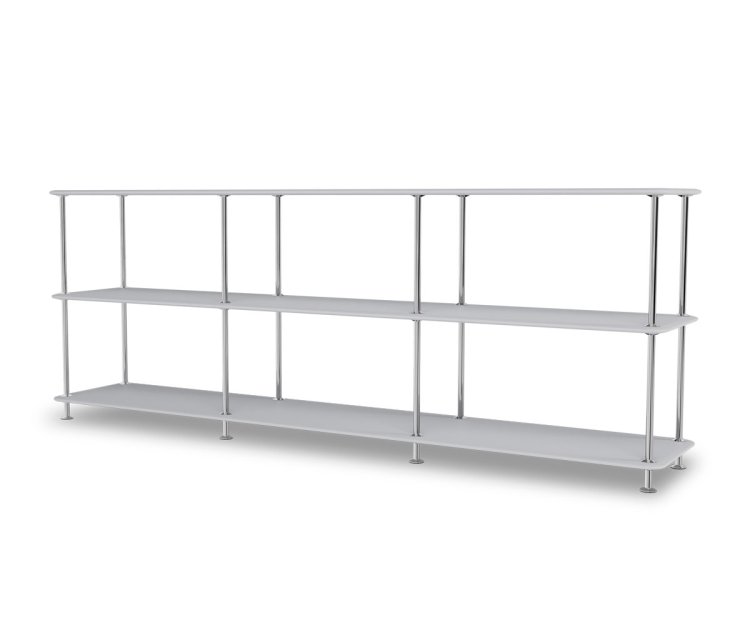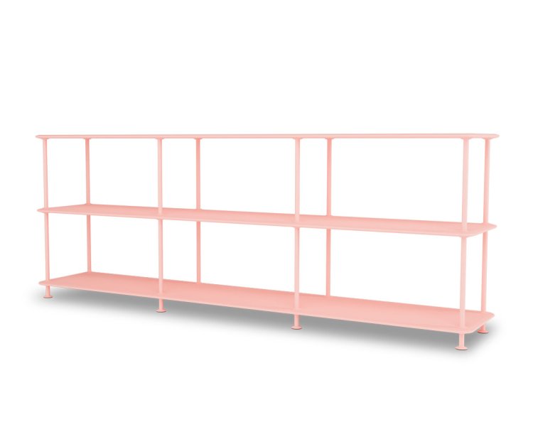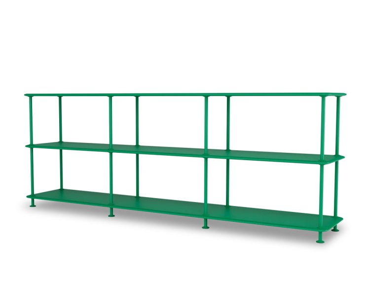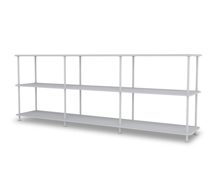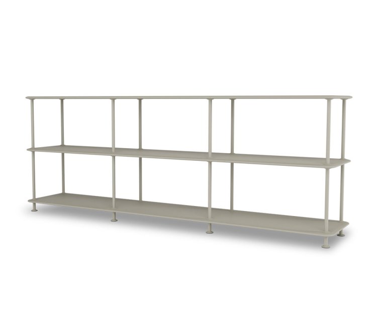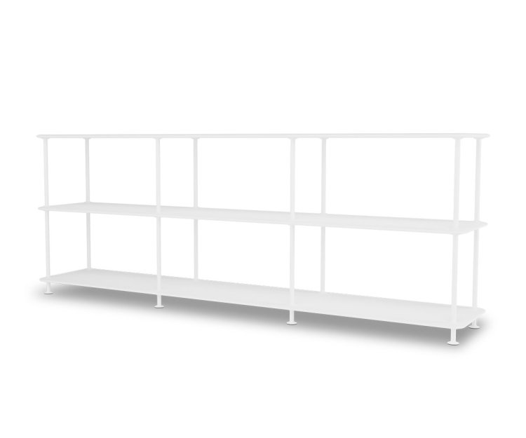 Montana Free reolsystem er opbygget af lakerede MDF-hylder i dybde 38 cm. adskilt af tynde søjler, der giver et let og svævende udtryk og understreger de horisontale hylder. OBS: Reolen leveres som standard glat lak, men kan også vælges i strukturlak.