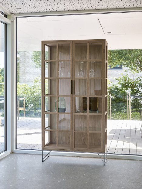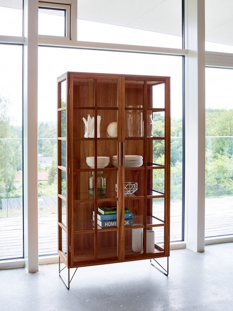 AK2780 er Naver Collections nyfortolkning af det klassiske vitrineskab. Kombinationen af det klare glas på fronten og siderne, den enkle træramme og det lette stålunderstel giver vitrinen et svævende og elegant udtryk. Der er fem flytbare glashylder samt tre indbyggede LED-spots foroven, som giver et flot, blødt lys. Vitrinen har et utal af anvendelsesmuligheder, og kan bruges til at opbevare og vise det, som du holder af.