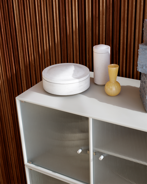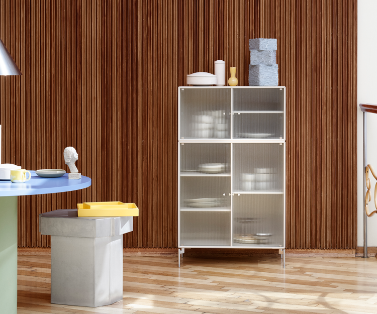 Ripple Vitrineskabet er lavet i 12 mm MDF og fås i flere forskellige størrelser med ophæng, ben eller sokkel. Ripple vitrineskabet fås i alle Montanas 41 lakfarver.