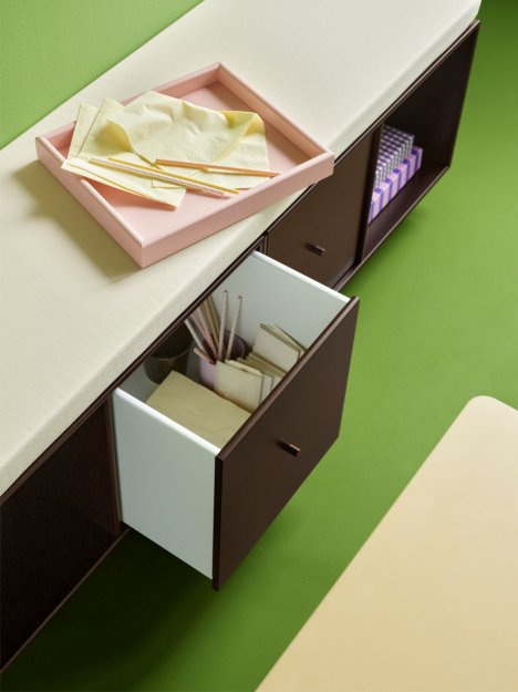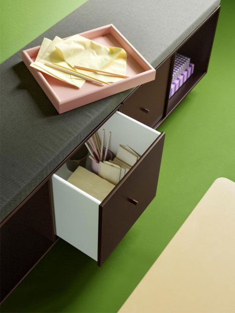 • Hynderne fås i fire farver i tekstilet Reflect fra Kvadrat (se farverne i billedgalleriet): Reflect 404, Reflect 614, Reflect 344 og Reflect 184