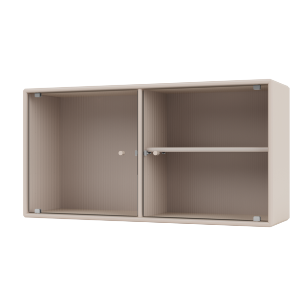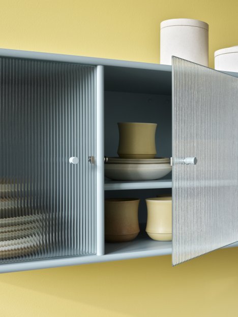 Ripple Vitrineskabet er lavet i 12 mm MDF og fås i flere forskellige størrelser. Denne model leveres med ophæng til vægmontering. Ripple vitrineskabet fås i alle Montanas 41 lakfarver.