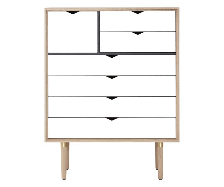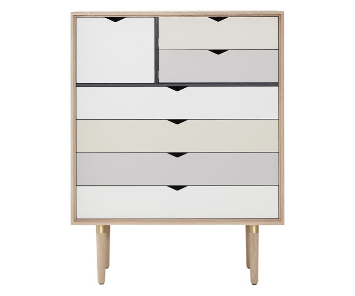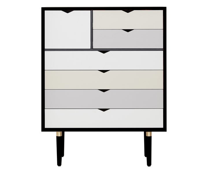 S8 Kommoden er velegnet i både stue, entré, soveværelse eller andre rum, hvor der er behov for opbevaring i et flot og lækkert design. Kommoden fås med korpus i eg, valnød eller sort og der vælges mellem en klassisk hvid front eller en smagfuld kombination i beige og grå pastelfarver.