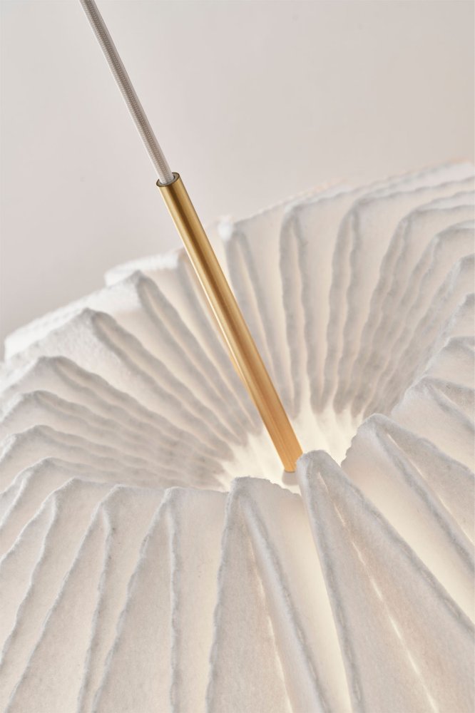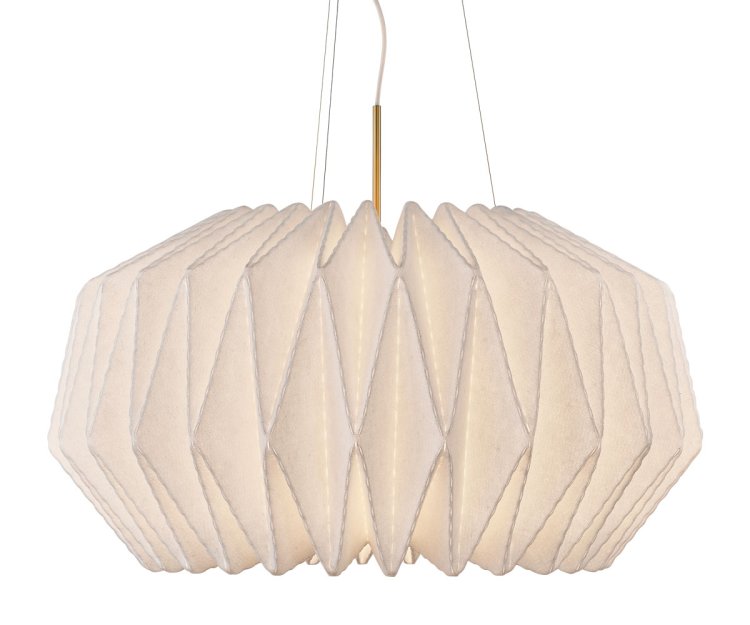 Denne Le Klint lampe er udført i smukt håndfoldet filt, som giver pendlen et blødt og organisk udtryk. De fine perforeringer i overfladen lader lyset sive ud i et varmt, levende mønster, mens lampen samtidig giver et præcist og behageligt nedadrettet lys. Det gør Softly Pleated I ideel som loftslampe over spisebordet, i stuen eller til større rum, hvor en stemningsskabende designer lampe får lov at spille hovedrollen.