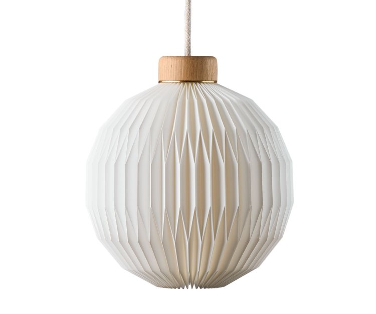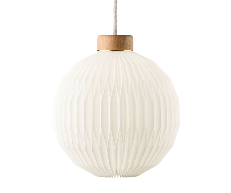 Som altid er hver eneste skærm håndfoldet i Odense efter de traditionsrige teknikker, der kendetegner Le Klint. Model 180 Small leveres med et ophæng i lyst eller røget egetræ med fine messingdetaljer, der giver lampen et varmt, naturligt og eksklusivt udtryk.