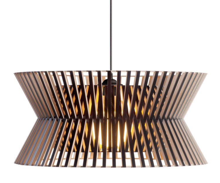 Pendlen er opbygget af fine, buede trælameller, som skaber en harmonisk balance mellem design og funktion. Det karakteristiske design gør Kontro 6000 pendel til et naturligt blikfang – uanset om den placeres over spisebordet, i stuen eller i et soveværelse.