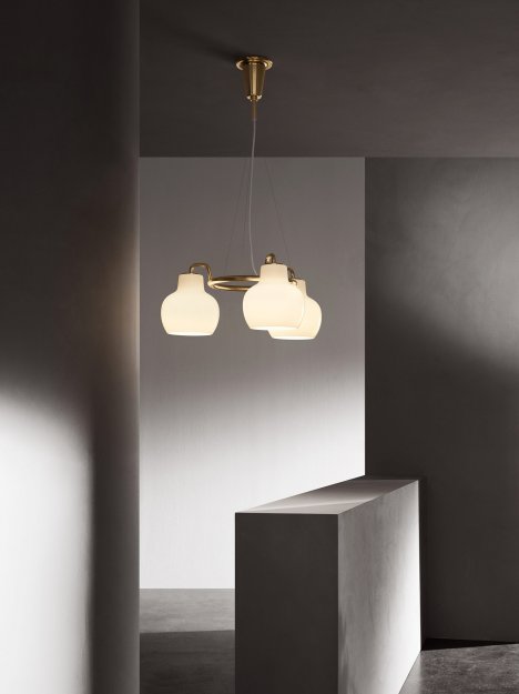VL Ring Crown blev relanceret i 2019 i en version, der er tro mod de originale materialer og det originale design. Den nye version er fremstillet af ubehandlet, poleret messing og leveres med tre, fem eller syv skærme i blankt, hvidt, mundblæst, opalt trelagsglas. Den komplementeres af de væglamper og pendler, der oprindeligt var installeret i Radiohuset. VL Ring Crown-familien giver et markant og autentisk touch til stilfulde interiører og et varmt og blødt lys, der passer perfekt til en moderne livsstil.