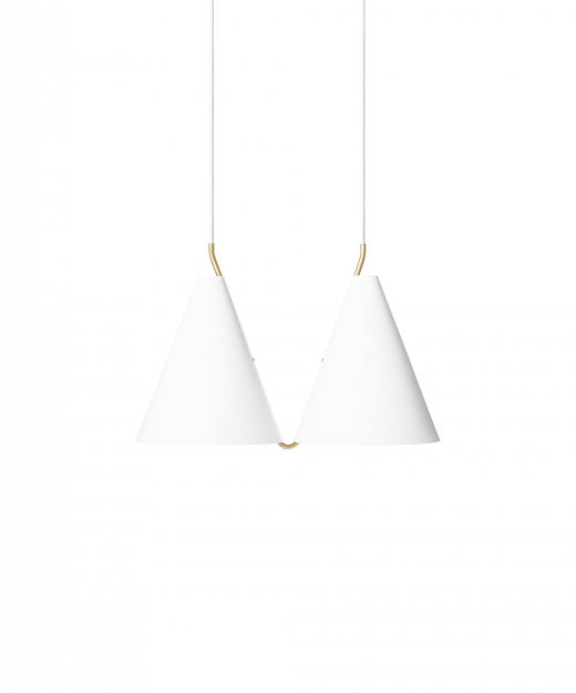 MOSAIK side by side pendlen giver et varmt nedadvendt lys med sine to skærme. Belysningen rammer de smukke messingrør som giver lampen et elegant udtryk. Bent Karlby designede den klassiske MOSAIK-serie i 1959.