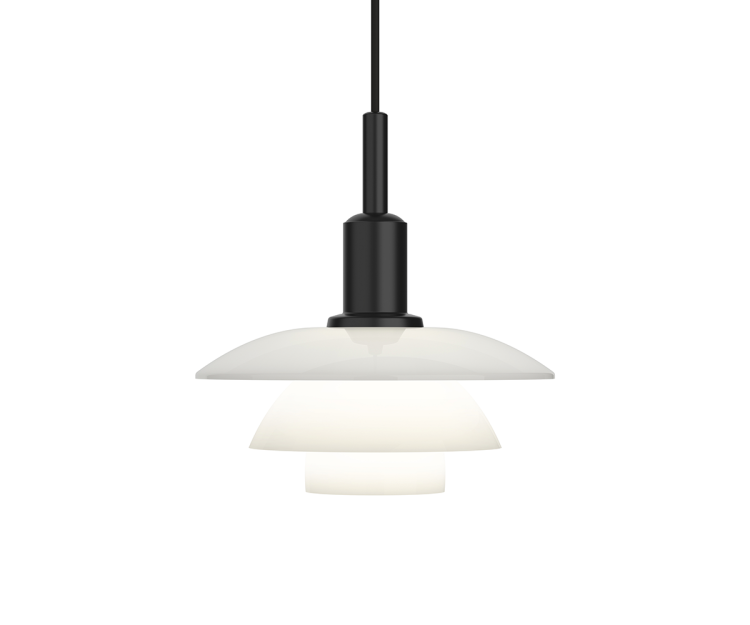 Armaturet kan enten fås med hvidt opalt glas eller soft-touch sortlakeret metal med en hvid inderside samt en kombination af metal og glas. De mundblæste opalt tre-lagsglas giver PH 3/3 en varm udstråling, hvor metalskærmene med hvidmalede indersider reflekterer et fint og primært nedadrettet lys. Lampen med kombinationen af en overskærm i metal og mellem- og underskærme i opalt glas giver begge dele. Den medfølgende bundglas i matteret glas kanindsættes for at give en endnu blødere lysfordeling.