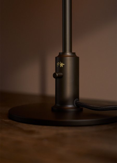 Hvert enkelt lampeelement er resultatet af omhyggeligt udført håndværk – fra glaspusternes præcise lagopbygning og sandblæsning til den tidskrævende patineringsproces af messingdelene. Som et eksklusivt finish er Poul Henningsens initialer diskret indgraveret i basen.