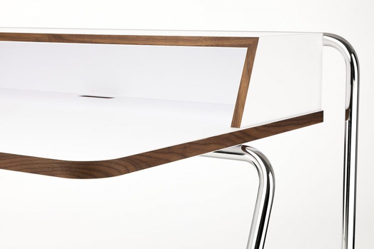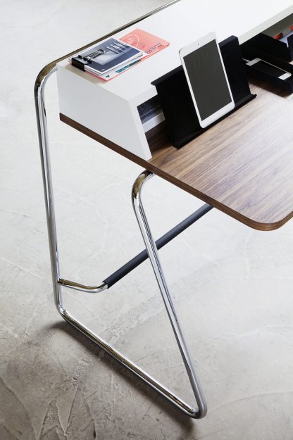 Modellen på billedet er udført i krom rør med overflade og kabinet i MDF med valnødde kant.