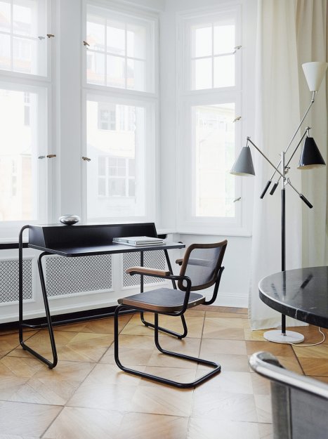S 1200 er det perfekte bord til hjemmekontoret. Som tillæg til bordet kan du bestille en stor eller lille bakke, stander til bøger eller iPad og et kabelsæt så du har styr på alle ledninger. S 1200 fås i et stort udvalg af stel- og korpusfarver. Ring for flere yderligere modeller.