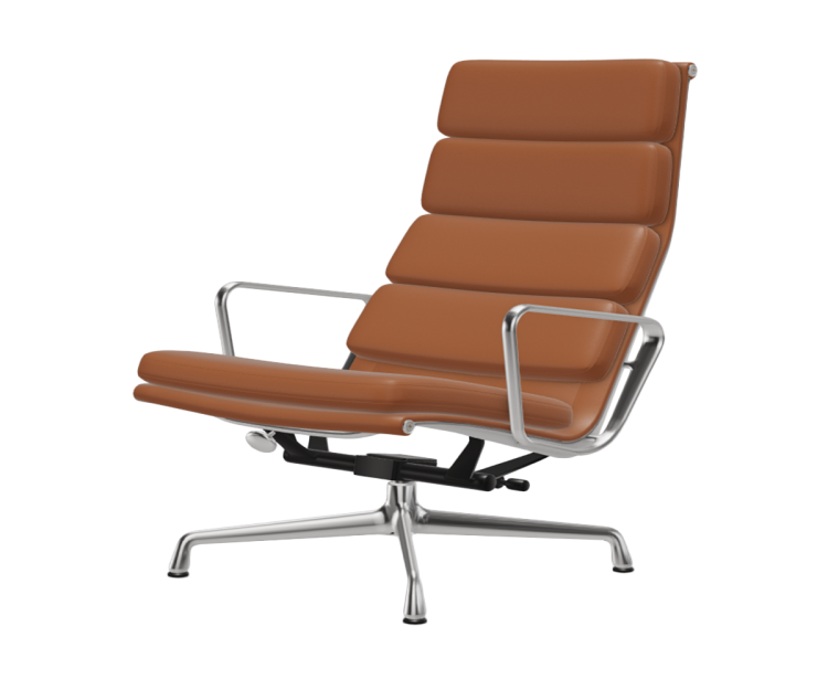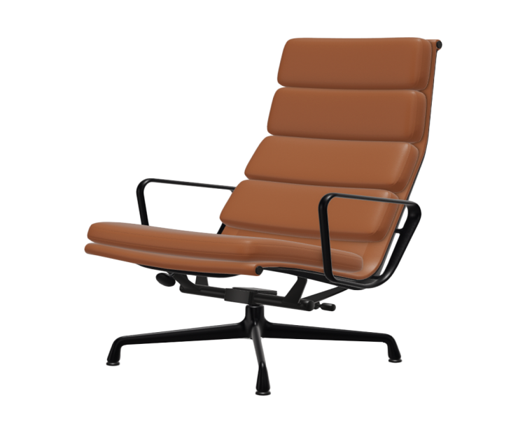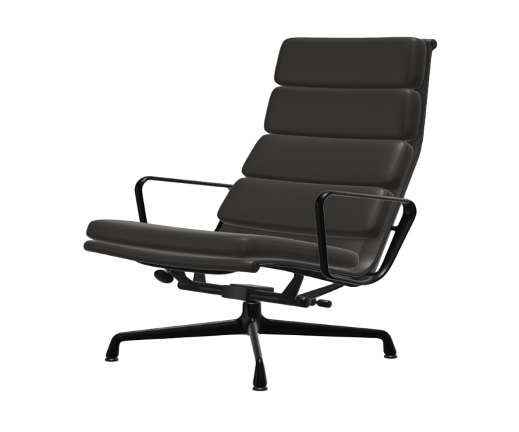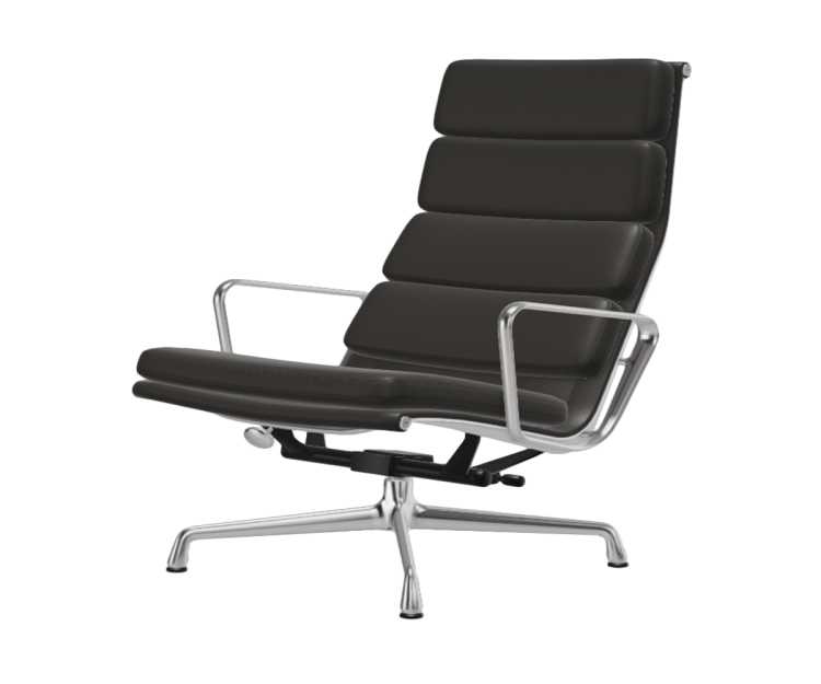 Lænestolen Soft Pad Chair EA 222 designet af Charles og Ray Eames tilbyder ultimativ komfort med sit høje ryglæn og lave sæde og ikke mindst på grund af dens vippemekanisme, som kan justeres til den enkelte brugers vægt. Den matchende skammel EA 223 giver en behagelig fodstøtte. Sammen danner EA 222 og EA 223 det perfekte sted for lange hyggelige aftener med en god bog.