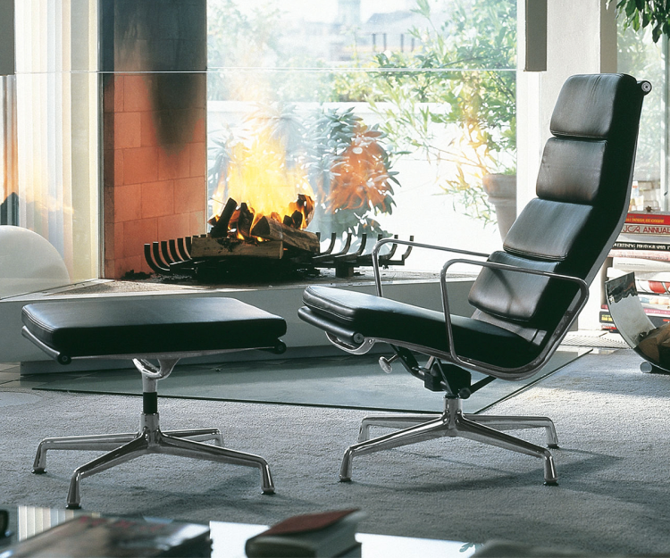 Skamlen EA 223 af Charles og Ray Eames giver den siddende mulighed for at støtte sine fødder, mens man sidder i den matchende Soft Pad Chair EA 222. Som kombination er de et perfekt par til lange hyggelige aftener med en god bog.